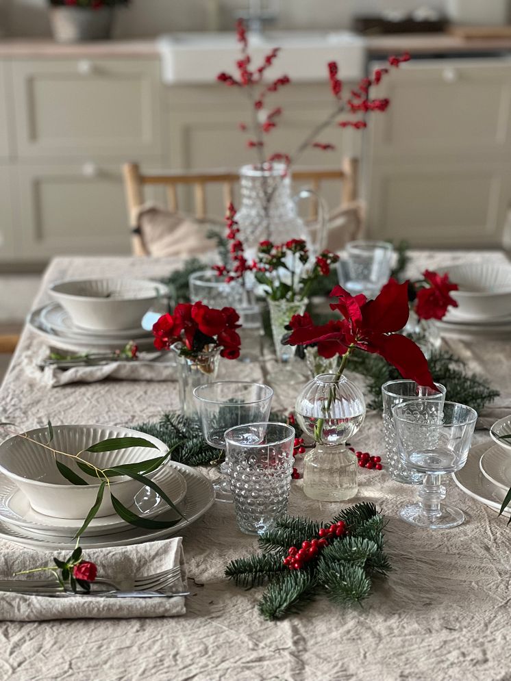 Juldukning med klassiska julblommor.