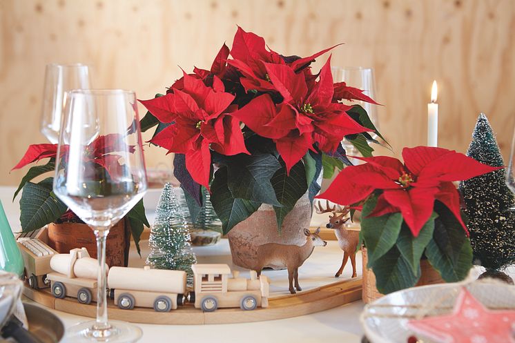 Miniatyrlandskap med julstjärnor. Bilder får användas av media samt av Blomsterfrämjandets medlemmar och sponsorer men måste märkas med byline Stars for Europe. Bilderna är producerade med finansiellt stöd från EU.