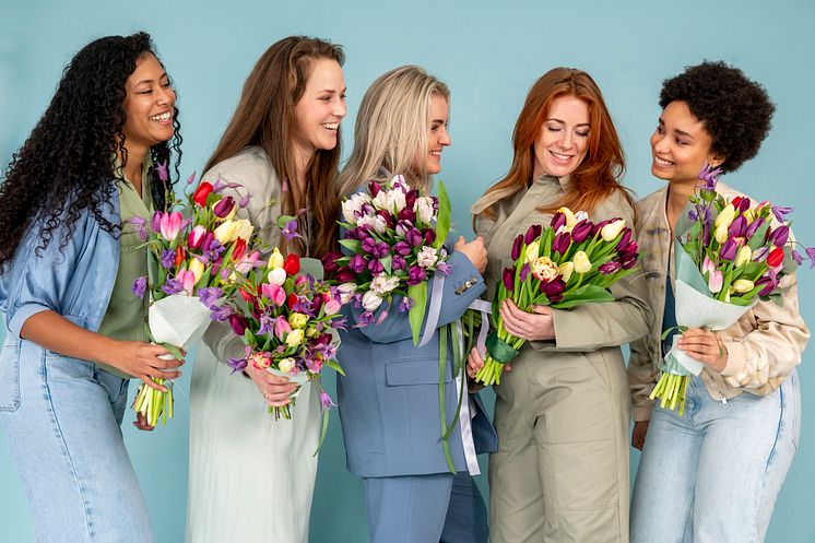 Att fira med tulpaner är härligt. Galentine's Day, en vänskaplig tradition där kvinnor firar sina vänskapsrelationer snarare än romantiska Foto: iBulb