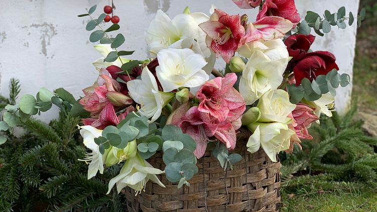 Amaryllisglädje i en krans. Foto: Blomsterfrämjandet/Lina Arvidsson