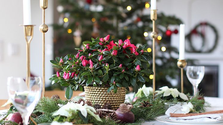 Azalea är kanske den allra lyxigaste av våra klassiska julblommor. Den är formstark, rikblommande och de mörka glansiga bladen ger ett ädelt intryck. Dessutom är azalean en utmärkt luftfuktare som ger hälsosammare inomhusluft. Nya odlingsmetoder gör den dessutom lätt att lyckas med. Trädgårdsmästare Maria Lundgren på Arvidssons i Fjärås har odlat azaleor under många år och hon delar med sig av sina bästa skötsel- och inredningstips.