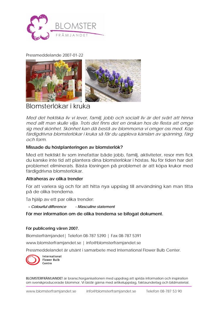 Pressmeddelandet är utsänt i samarbete med International Flower Bulb Center.