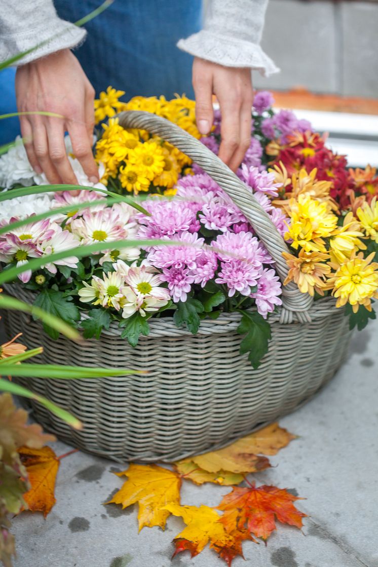 Krysantemum är ett populärt val när det är dags att fylla höstkrukorna eller varför inte en korg. De producerar mängder med blommor och finns i många olika färger. Foto: Blomsterfrämjandet