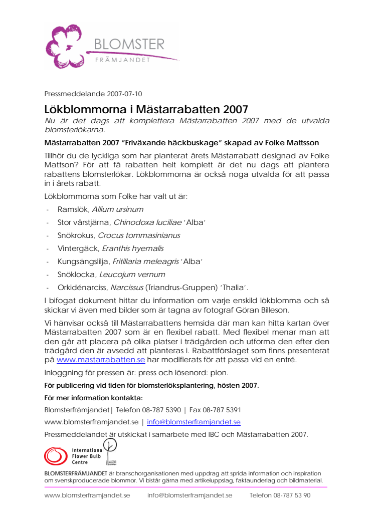 För publicering vid tiden för blomsterlöksplantering, hösten 2007.