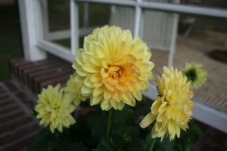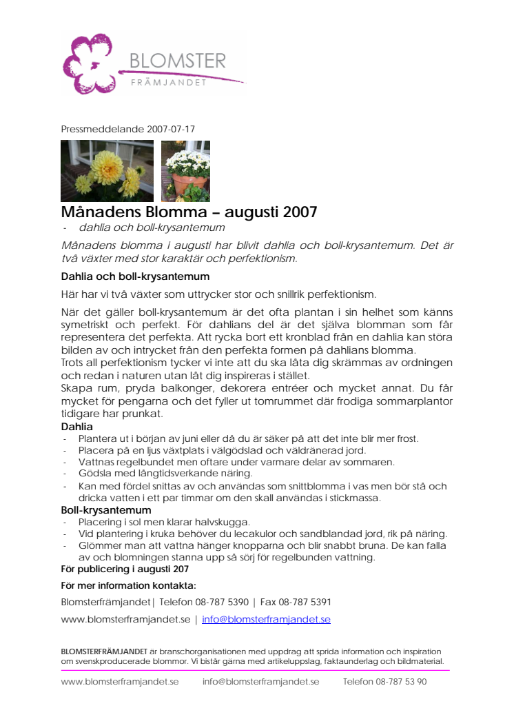När det gäller boll-krysantemum är det ofta plantan i sin helhet som känns symetriskt och perfekt. För dahlians del är det själva blomman som får representera det perfekta. Att rycka bort ett kronblad från en dahlia kan störa bilden av och intrycket från den perfekta formen på dahlians blomma.