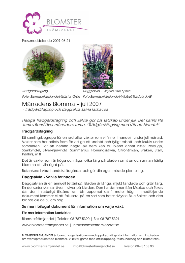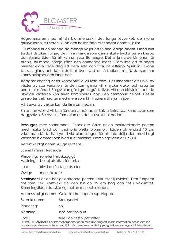 Härliga Trädgårdsfägring och Salvia gör oss sällskap under juli. Det känns lite James Bond över månadens tema, ”Trädgårdsfägring med rätt att blanda!”