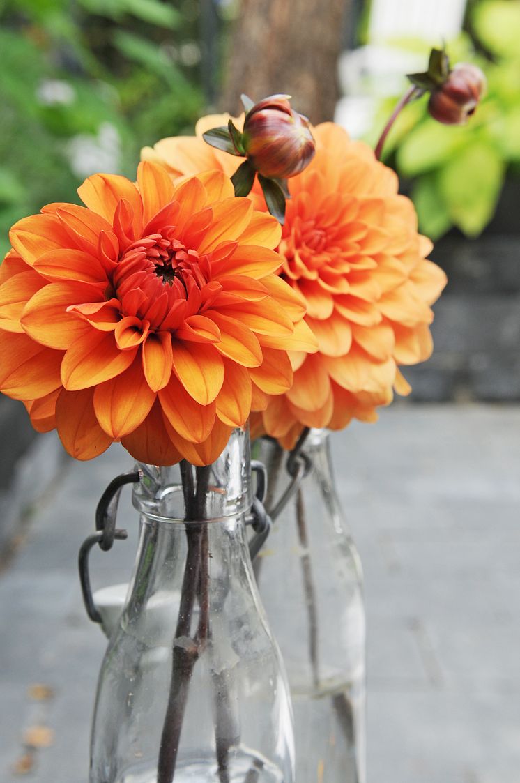 När vi dukar upp sommarens festbord i trädgården vill vi gärna dekorera och göra fint. Ta saxen och klipp av några blommor från både stäppsalvian och dahlian för att förgylla och glädja vid matbordet.