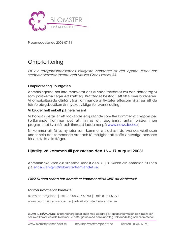 Anmälan ska vara oss tillhanda senast den 31 juli. Skicka din anmälan till Erica på erica.dahlqvist@blomsterframjandet.se.