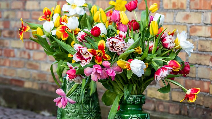 Blomsterfrämjandet, Sveriges ledande organisation för att främja användningen av blommor och växter, tipsar om ett enkelt sätt för att förvandla utseendet på tulpanbuketten. Knepet är att vika ut kronbladen vilket ger tulpanerna ett helt nytt utseende.
