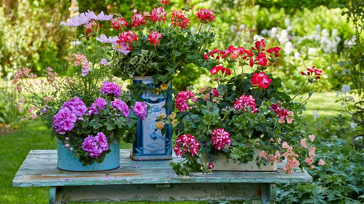 Pelargonen som härstammar från Sydafrika tål torka väl eftersom den har en förmåga att lagra vatten i sina stjälkar och blad. Foto: Pelargonium for Europe