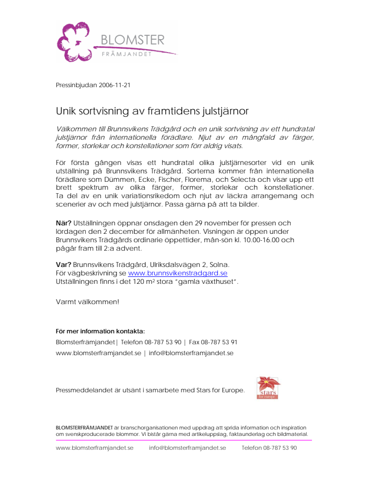 Blomsterfrämjandet| Telefon 08-787 53 90 | Fax 08-787 53 91