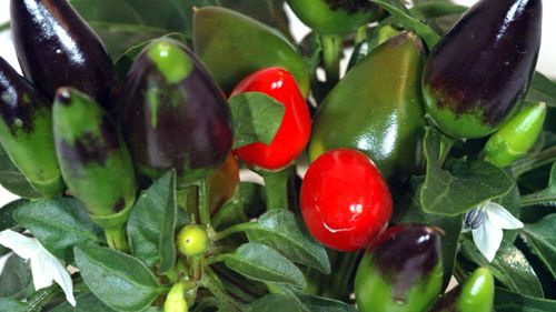 Capsicum annuum, spanskpeppar, odlas framförallt för sina färgstarka och dekorativa frukters skull. Börja hösten med en ”eldig” spansk peppar!