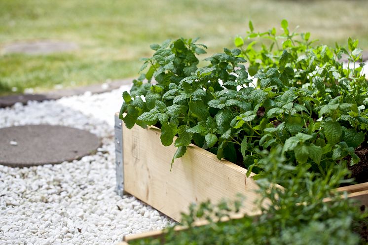 Här har vi valt att bygga ihop enkla kvadrater, på samma sätt som i första exemplet. Köp 2 pallkragar och använd långsidorna från båda ramarna för sig och kortsidorna för sig. Kvadraterna är ett trevligt dekorativt format som kan kombineras ihop i fantasifulla mönster.