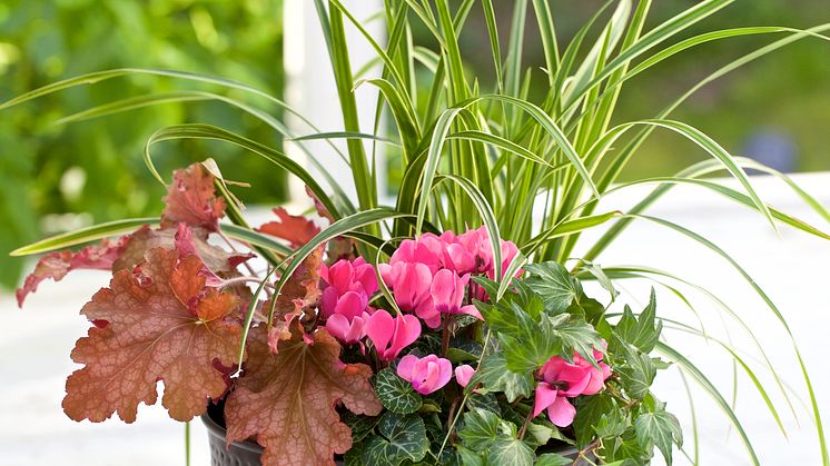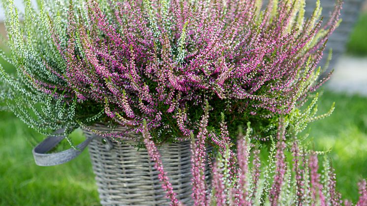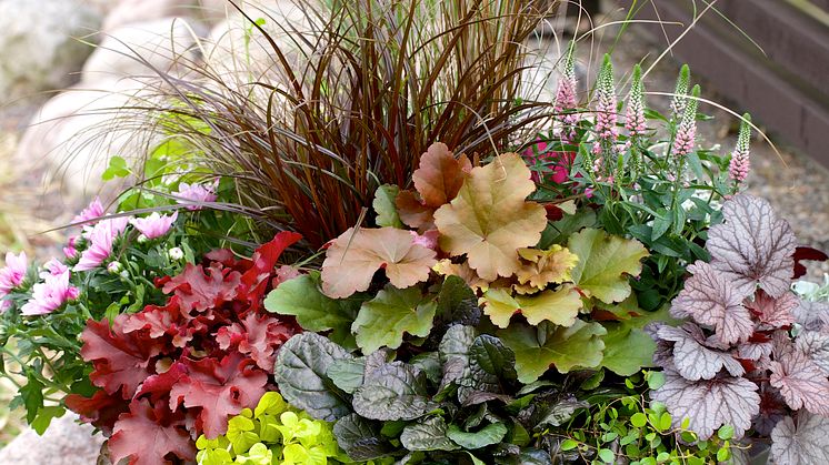 Höstkruka för balkongen - rödbladig alunrot och perenn ljung