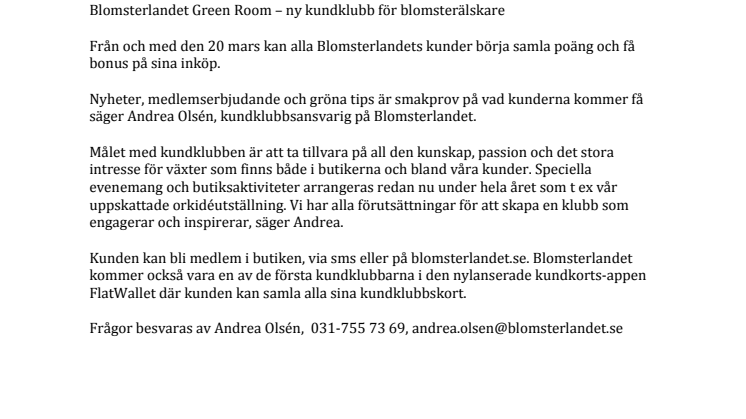 Frågor besvaras av Andrea Olsén, 031-755 73 69, andrea.olsen@blomsterlandet.se