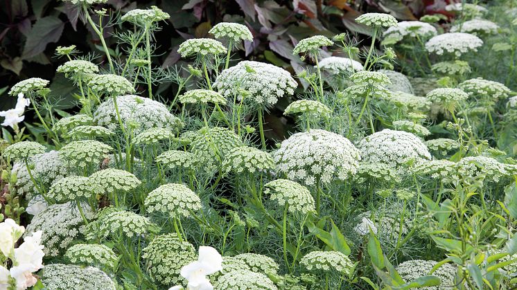 Skir blomställning som fyller ut fint i både bukett och plantering. De limegröna knopparna slår ut i vita blomflockar. Också det finflikiga bladverket är dekorativt. Uppskattas av pollinatörer och kan torkas som eternell. Lättodlad med små krav på jordmån.