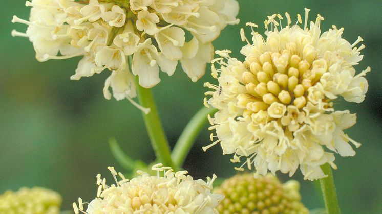 Praktvädd där de limegröna knopparna slår ut i ljust aprikosfärgade, honungsdoftande blommor. Stadiga stjälkar och lång blomningstid. Superb tillsammans med prydnadsgräs. Kan också torkas som eternell. Uppskattas av pollinatörer.