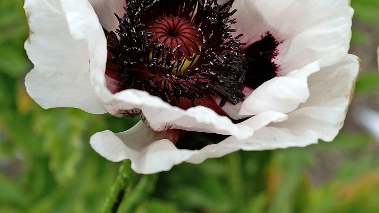 Romantisk vallmo med florstunna, vita kronblad, som silkestyg, med kontrasterande svartpudrade ståndare. Lättodlad perenn med ett robust växtsätt. Frökapseln är mycket dekorativ, går bra att torka och kan användas som eternell. Självsår sig gärna. Efter blomningen vissnar plantan ner och kan då skäras ner, så bildas en ny, vacker bladrosett framåt sensommaren. Blommorna attraherar våra pollinatörer. Förvara jordstammen svalt och mörkt, exempelvis i kylskåp, tills det är dags för plantering. Plantera direkt på växtplatsen när frostrisken är över. Trivs bäst på solig plats i väldränerad, lätt, relativt torr jord. Passar bra i blandade rabatter ihop med andra perenner. Växten har en kraftig pålrot så undvik att flytta den när den etablerat sig. Anses vara mindre smaklig för rådjur.