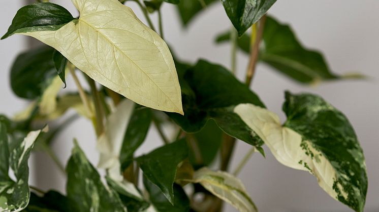 Den variegerade monsteran med sina vitspräckliga blad har blivit en viral favorit och närapå samlarobjekt. För den som gillar brokbladigt och vill ha vackra, flikiga blad i vackert grönt och vitt till rimligare pris tipsar vi om pilspetsrankan Syngonium Podophyllum 'Albo Variegata'. Det vita på bladen är närapå så vitt man kan få. Riktigt läckert. Vill stå ljust men inte i direkt sol och torkar gärna upp mellan vattningarna.