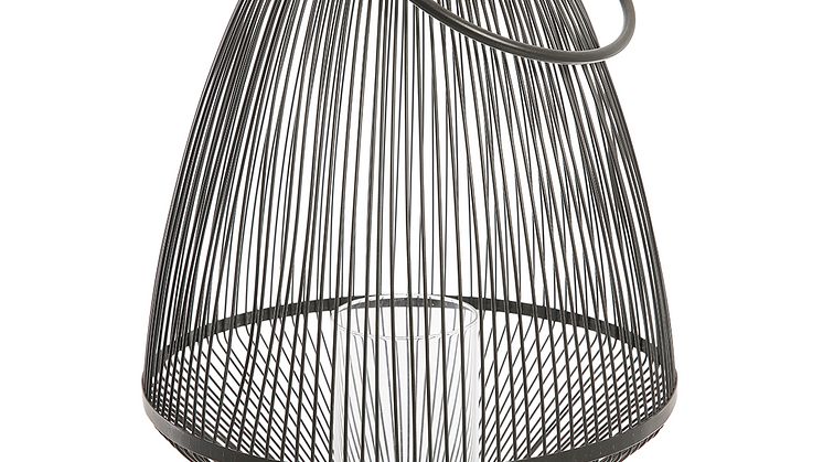 Stilfull lykta i svart metall som ger spännande skuggmönster. Kan både hängas upp och stå på marken. Ljuskopp i glas ingår.