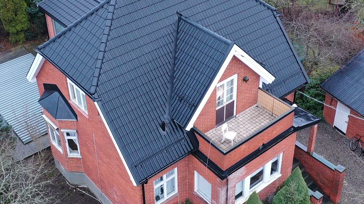 Den smarta takpannan som lades på vinnartaket i Älvsjö utanför Stockholm har låg vikt och mindre mosspåväxt. Janne Holopainen, ägare till Briljant Tak & Bygg, förklarar: