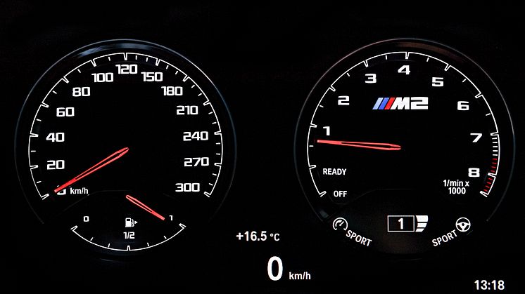 - M-knappar, M1 och M2, på ratten för direkt tillgång till dina personliga konfigureringar av motor- och styrningskaraktär samt växellådan M DCT.