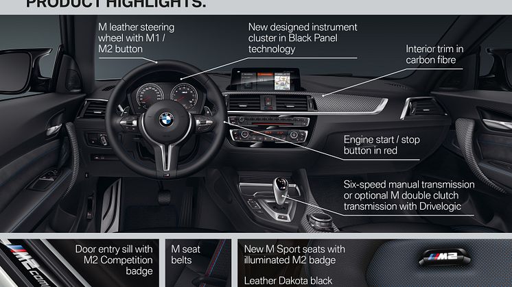 - Ny tillvalsutrustning, M Sport-stolar med integrerade nackstöd och belyst M2-emblem.