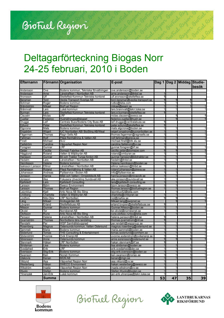 Deltagarförteckning Biogas Norr