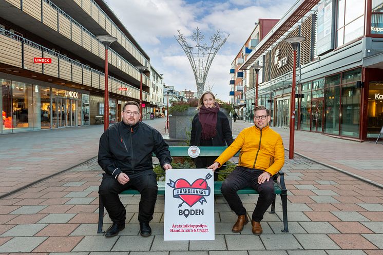 Dennis Wikstén, Michaela Strömberg och Rikard Matsson på gågatan i Boden.