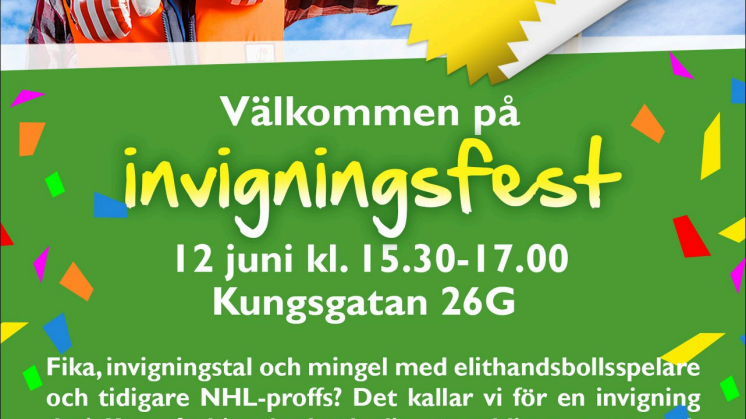 Under invigningsfesten bjuder vi på fika, invigningstal och mingel med elithandbollsspelare och tidigare NHL-proffs. Besökare och press är välkomna att spana in de nya, fräscha lokalerna, mingla och fika. Invigningstalare är Hendrik Andersson, ordförande i Kultur-, fritids- och ungdomsnämnden, Bodens kommun.