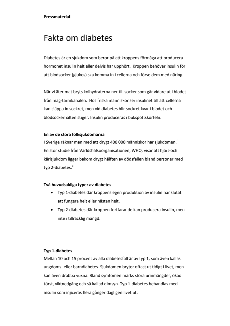 Diabetes är en sjukdom som beror på att kroppens förmåga att producera hormonet insulin helt eller delvis har upphört. Kroppen behöver insulin för att blodsocker (glukos) ska komma in i cellerna och förse dem med näring. I Sverige räknar man med att drygt 400 000 människor har sjukdomen.