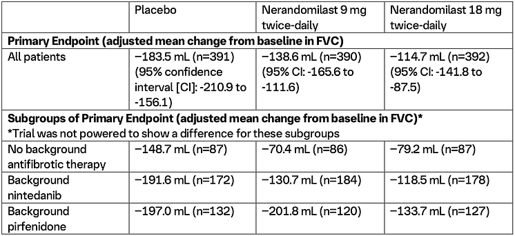 (2) Maher TM, et al. (2025) Nerandomilast in patients with progressive pulmonary fibrosis. In: NEJM. 2025.