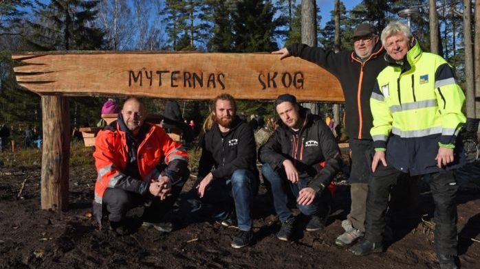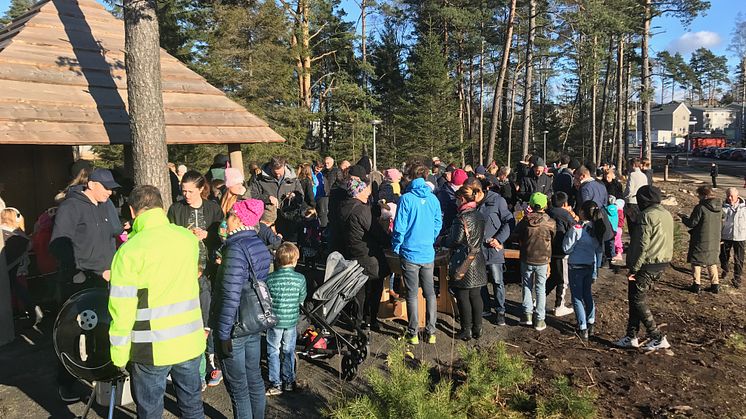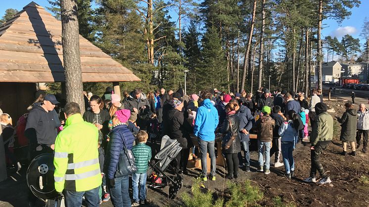 I strålande höstväder invigdes naturlekplatsen Myternas skog i Älvängen. Tunnlar, trädhus och en skogsaffär lockar till lek. Här är det lätt för pigga ben att hitta upptåg i parkens alla hörn. Känner man sig trött kan man vila sig vid den väderskyddade grillplatsen.