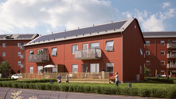 Illustration av trädgårdssida, BoKlok Silvermalmen i Sala.