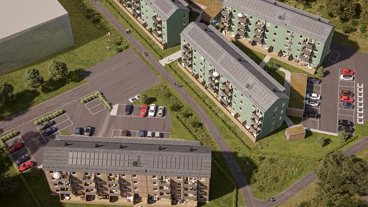 Översiktsillustration av av det nya kvarteret BoKlok Dalen, Södertälje.