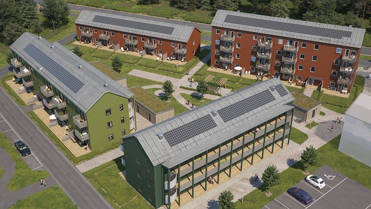 Översiktsillustration av det nya området BoKlok Amazonen i Hälsinggården, Falun.