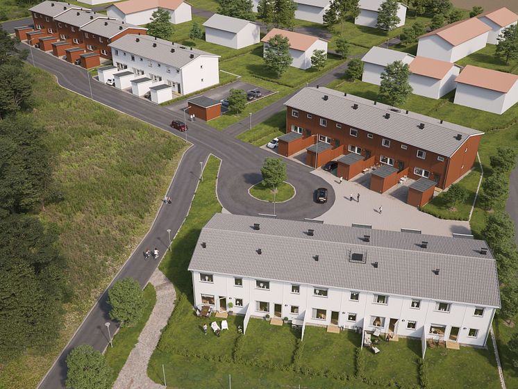 Översiktsillustration av det nya området, BoKlok Paradisängarna, Upplands Väsby.