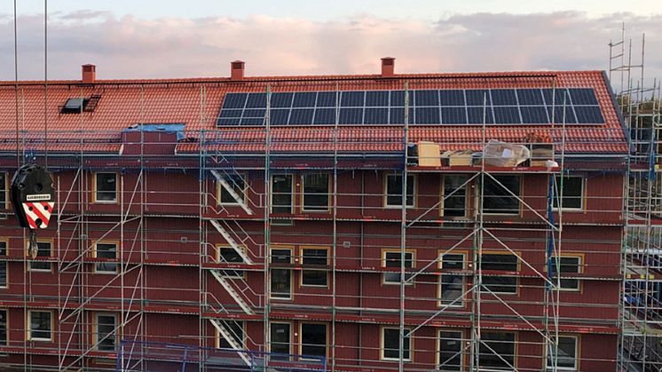 Tre av BoKloks nybyggda lägenhetshus har hunnit få solceller installerade, och fler ska det bli.