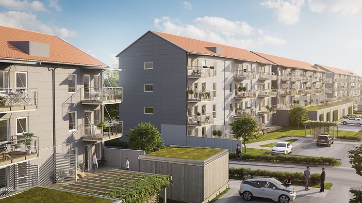 De 68 lägenheterna i Eds allé kommer att ha två, tre och fyra rum med en yta på 55, 72 respektive 85 kvm. De byggs som bostadsrätter och priserna startar på 1 675 000 kr. Beräknad månadskostnad, med avgift till bostadsrättsföreningen och beräknad ränta är från 4450 kr för en tvårumslägenhet.