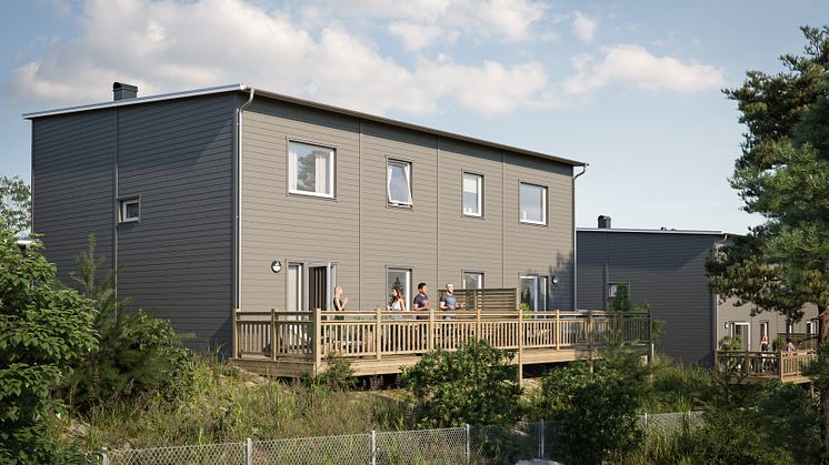 • Illustration av de nya husen med härlig utsikt och naturnära läge, BoKlok Sälgen i Strömstad.