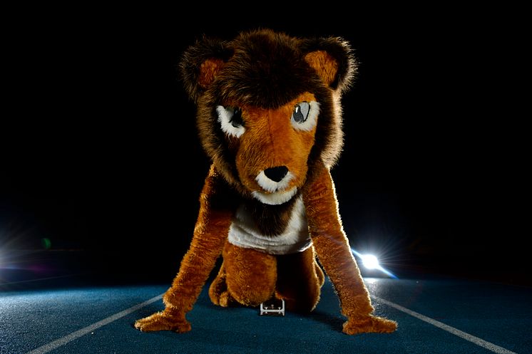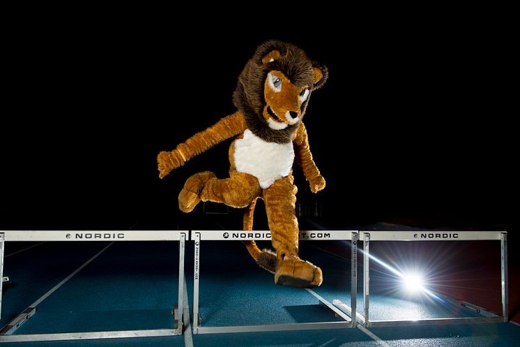Borås Djurparks Leo lejon gästspelar som officiell maskot under Friidrotts-SM 2013