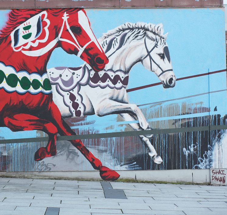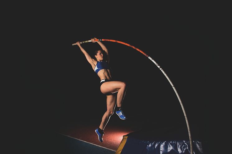 Maskoten för Friidrotts-SM 2013 i Borås i startblocken