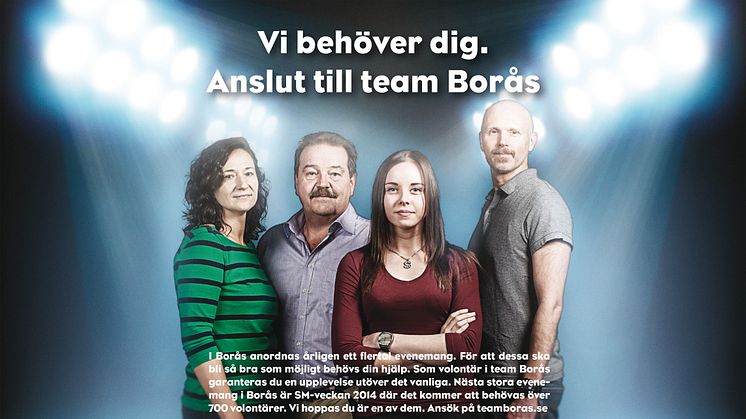 Borås förgylls med allt fler och större evenemang. Under de närmaste två åren står Borås värd för två av stadens största evenemang någonsin, SM-veckan 2014 och O-ringen 2015. Då och under ett flertal andra evenemang krävs massor av ideella krafter som vill ge gäster och evenemangsbesökare ett gott värdskap och samtidigt få en nära upplevelse av evenemanget.