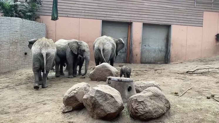 Elefanthuset fick sin första påskpresent redan i fredags. Då födde nämligen mamma Panzi (16 år) sin andra kalv. Kalven, med en matchvikt på ca 100 kg, kom till världen mitt framför ögonen på djurparkens personal ackompanjerad av flockens trumpetande. Glädjen och förväntan är dubbel, eftersom kalvens mormor Dudu (31 år) också är högdräktig och förväntas nedkomma vilken dag som helst!