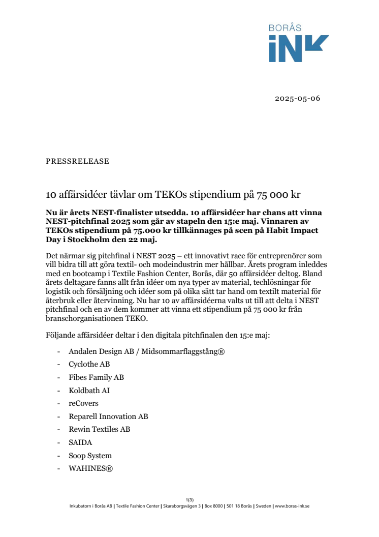 PM - 10 affärsidéer tävlar om TEKOs stipendium på 75 000 kr.pdf