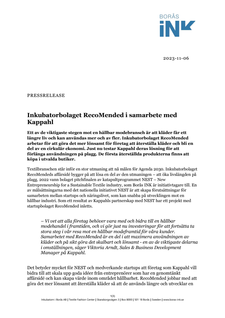 PM - Inkubatorbolaget RecoMended i samarbete med Kappahl.pdf