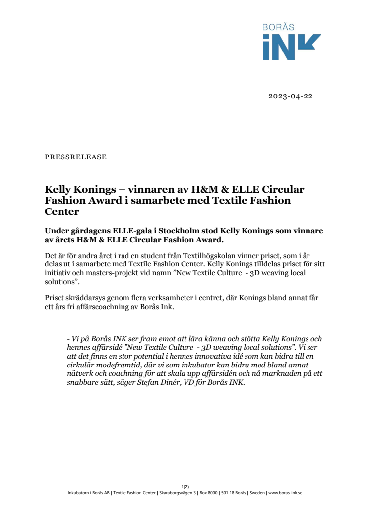 PM - Kelly Konings – vinnaren av H&M & ELLE Circular Fashion Award i samarbete med Textile Fashion CenterFashion Award i samarbete med Textile Fashion Center.pdf