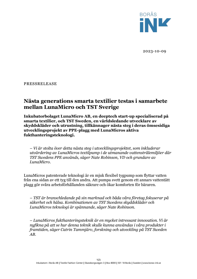 PM - Nästa generations smarta textilier testas i samarbete mellan LunaMicro och TST Sverige.pdf