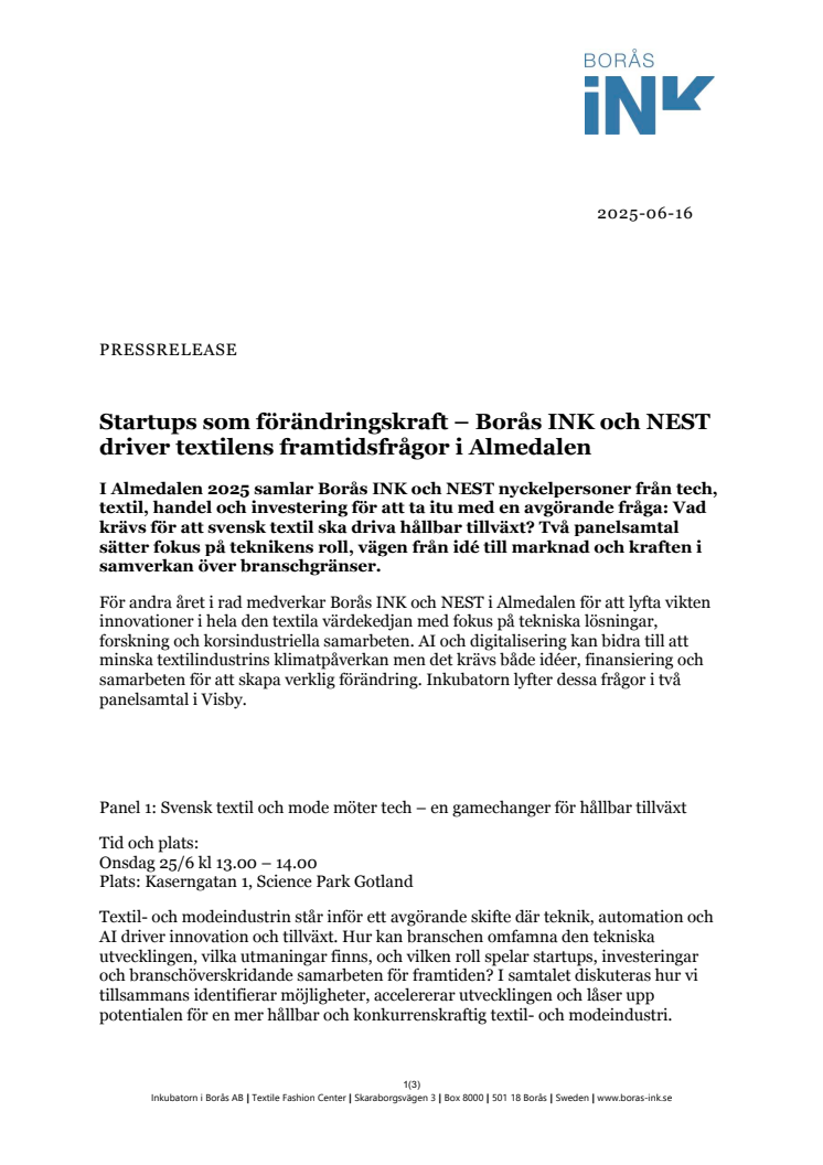 PM - Startups som förändringskraft – Borås INK och NEST driver textilens framtidsfrågor i Almedalen.pdf