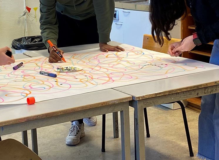 Genom en skräddarsydd process med workshops och idéverkstäder tillsammans med skolans elever kommer Saadia Hussain att skapa ett konstverk som lever kvar och berikar vardagen för eleverna på skolan. Processen är redan i full gång. Konstnären har både haft digitala träffar och fysiska workshops med eleverna. Ytterligare två heldagar med workshops är planerade på skolan den 27–28 april.